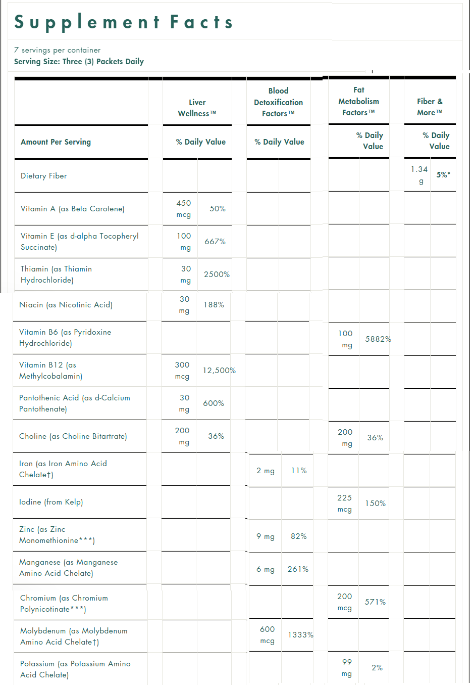 Tome el contenido de un paquete con cada comida (3 paquetes diarios). Siga este cronograma durante 7 días. A lo largo del tiempo que esté usando el programa de® lavado™ de 1 semana de Michael, beba mucha agua (no del grifo, destilada es mejor): 8 vasos o más al día. También es útil aumentar el consumo de frutas y verduras fibrosas y disminuir el consumo de alimentos procesados, carne y productos lácteos.