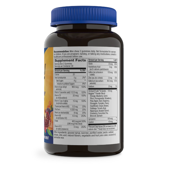 Gomitas multivitamínicas para hombres hechas con 15 vitaminas y minerales, incluidas 8 vitaminas B para convertir los alimentos en energía celular. Respalda la salud del corazón, la salud de los ojos, la función muscular y la salud inmunológica.