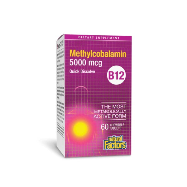La vitamina B12 desempeña algunas funciones muy importantes en nuestro organismo, como la formación de glóbulos rojos y el mantenimiento de la función nerviosa.* Para realizar estas funciones, el organismo debe convertir la vitamina B12 en una forma que pueda utilizar. ¡Introduzca la metilcobalamina de Natural Factors, la forma metabólicamente activa de la vitamina B12! El organismo puede utilizarla inmediatamente después de su absorción para apoyar los procesos fisiológicos esenciales.*