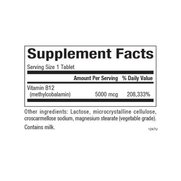 B12 Metilcobalamina 5,000 mcg Masticable 60 tab, Natural Factors