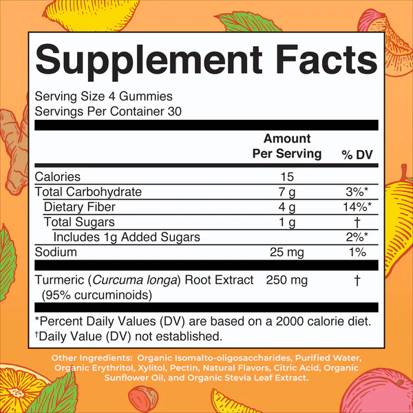 - Apoya a tu cuerpo con el fitonutriente curcumina. Benefíciese de los curcuminoides naturales de la cúrcuma con estas sabrosas gomitas de melocotón, mango y limón.