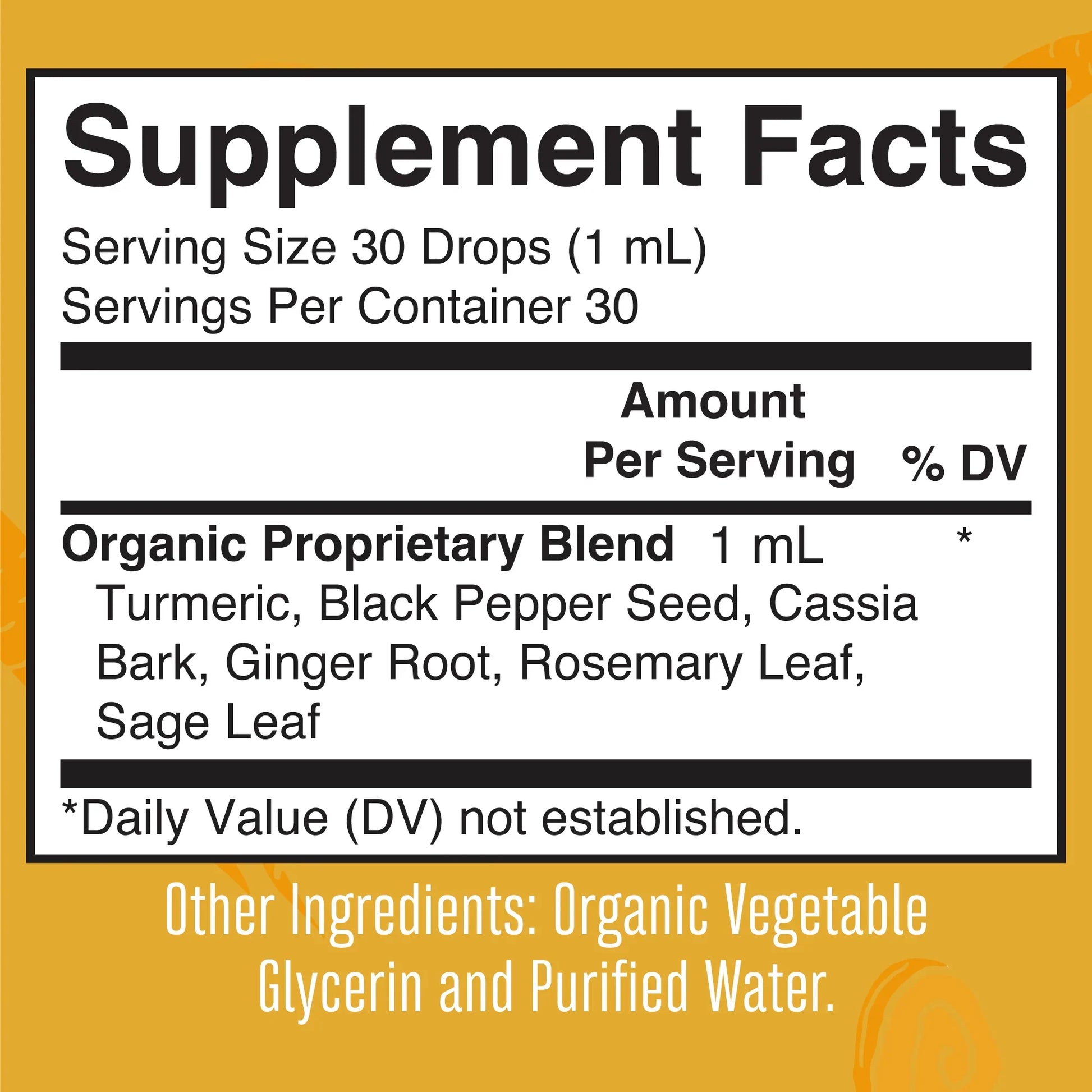Gotas líquidas de mezcla de hierbas de oro de cúrcuma orgánica (30ml) / Turmeric Gold Drops, Org, (1oz)