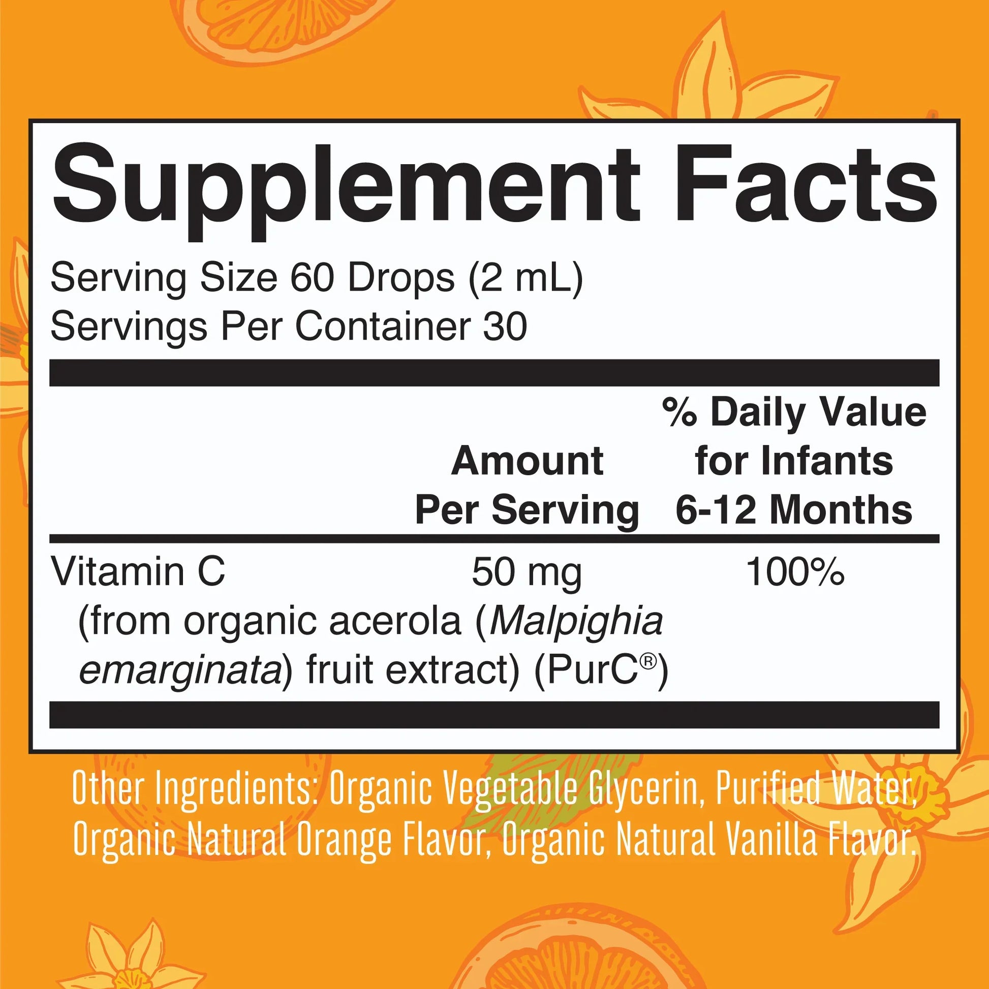 Gotas líquidas de vitamina C para bebés orgánicos (60ml) / Infant Vitamin C Drops, Orange Vanilla, Org, (2oz)