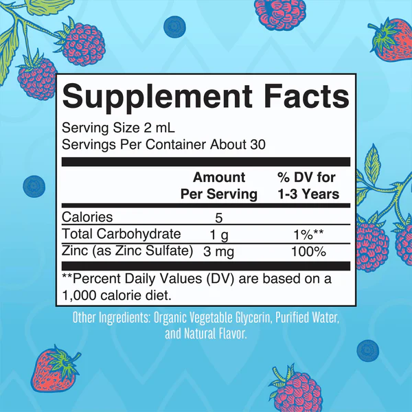 Apoye la función inmunológica de su niño pequeño con este delicioso zinc líquido con sabor a bayas. Nuestro zinc líquido es una forma sensata de garantizar que su niño pequeño reciba la cantidad de este mineral esencial que necesita para su crecimiento y salud en general.