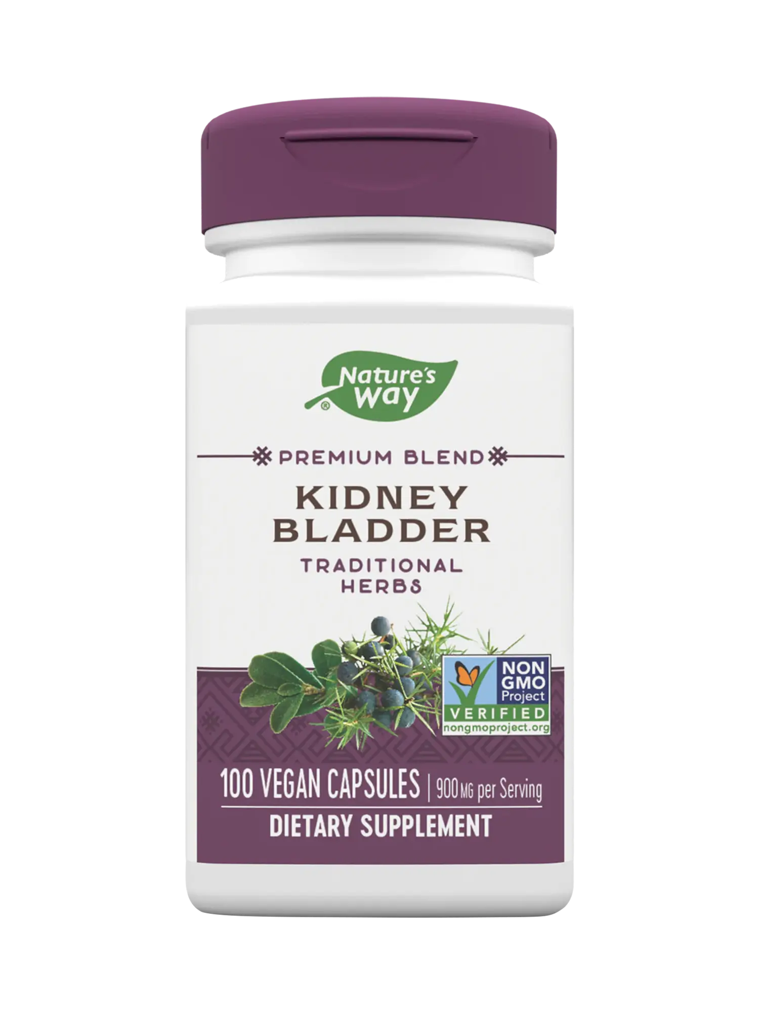 - La vejiga renal de Nature's Way es una mezcla de hierbas tradicionales, como la raíz de jengibre, la baya de enebro, la raíz de malvavisco, el perejil, la uva ursi y el sello de oro.