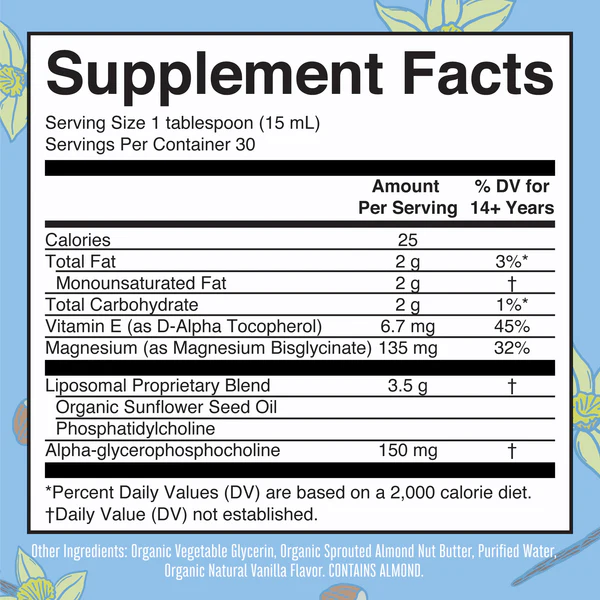¡Un mineral esencial para apoyar el estado de ánimo, la salud ósea, la absorción de nutrientes y más! Apoya tus niveles de Magnesio en un delicioso liposomal de almendras y vainilla.
