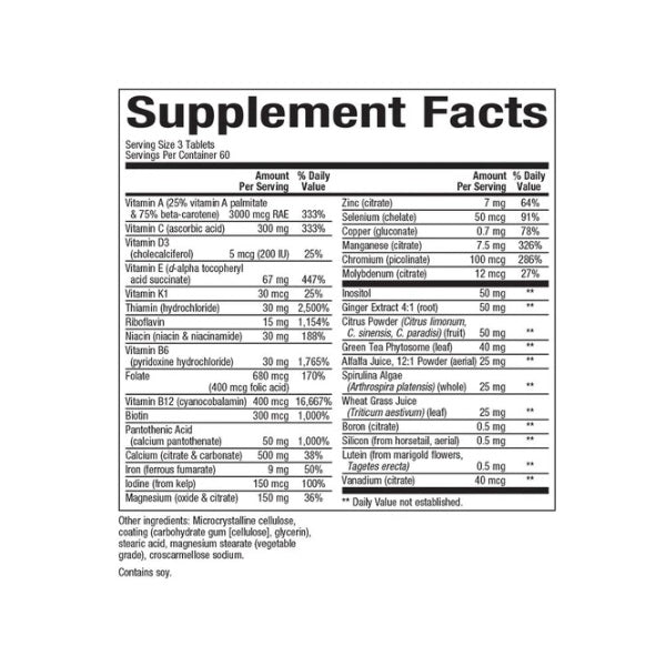 - Una base múltiple perfecta que incluye un espectro completo de nutrientes, hierbas y antioxidantes*
