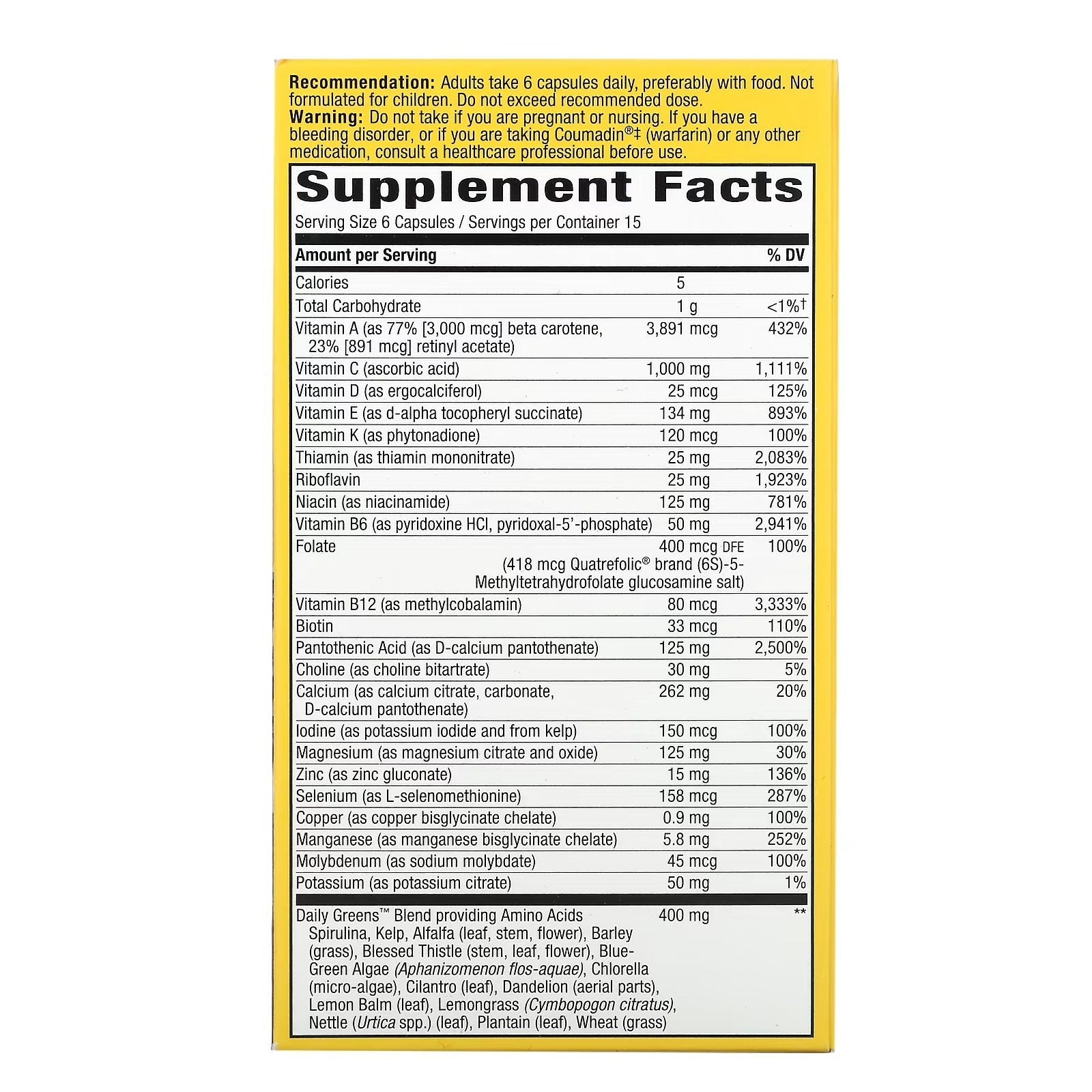 No lo tome si está embarazada o amamantando. Si tiene un trastorno hemorrágico, o si está tomando Coumadin®‡ (warfarina) o cualquier otro medicamento, consulte a un profesional de la salud antes de usarlo. Mantener fuera del alcance de los niños.