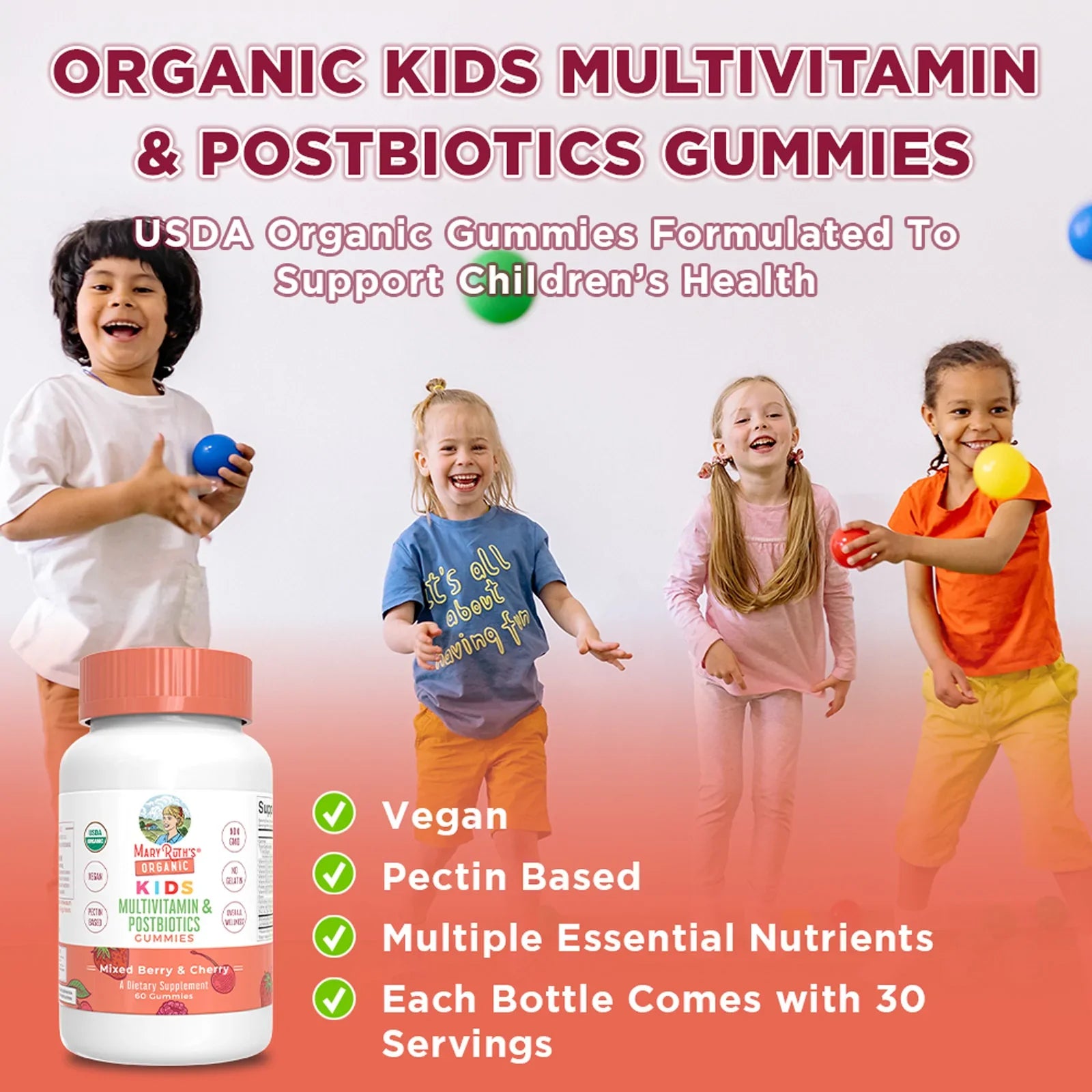 Multivitamínico orgánico para niños + Gomitas posbióticas/ Kids Multivitamin & Postbiotics Gummies, Mixed Berry & Cherry, Org, 60 ct