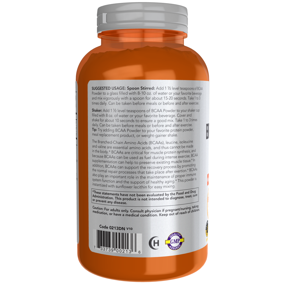 Cuchara revuelta: agregue 1 ½ cucharaditas rasas de BCAA en polvo a un vaso lleno con 8-10 oz. de agua o de tu bebida favorita y mezcla enérgicamente con una cuchara durante unos 15-20 segundos. Tomar de 1 a 3 veces al día. Se puede tomar antes de las comidas o antes y después del ejercicio.
