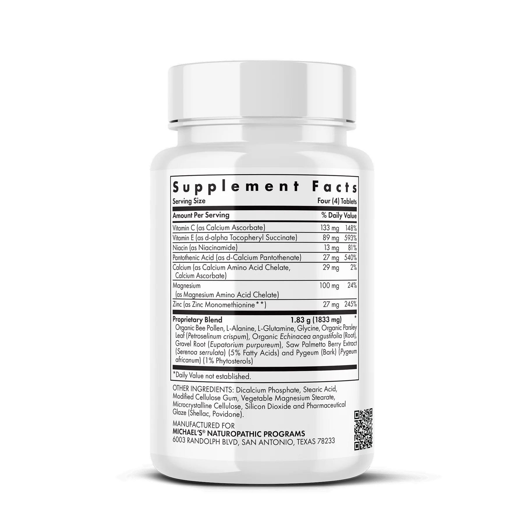 - Contiene palma enana americana y pygeum, así como Opti-Zinc® con la hierba beneficiosa raíz de grava.